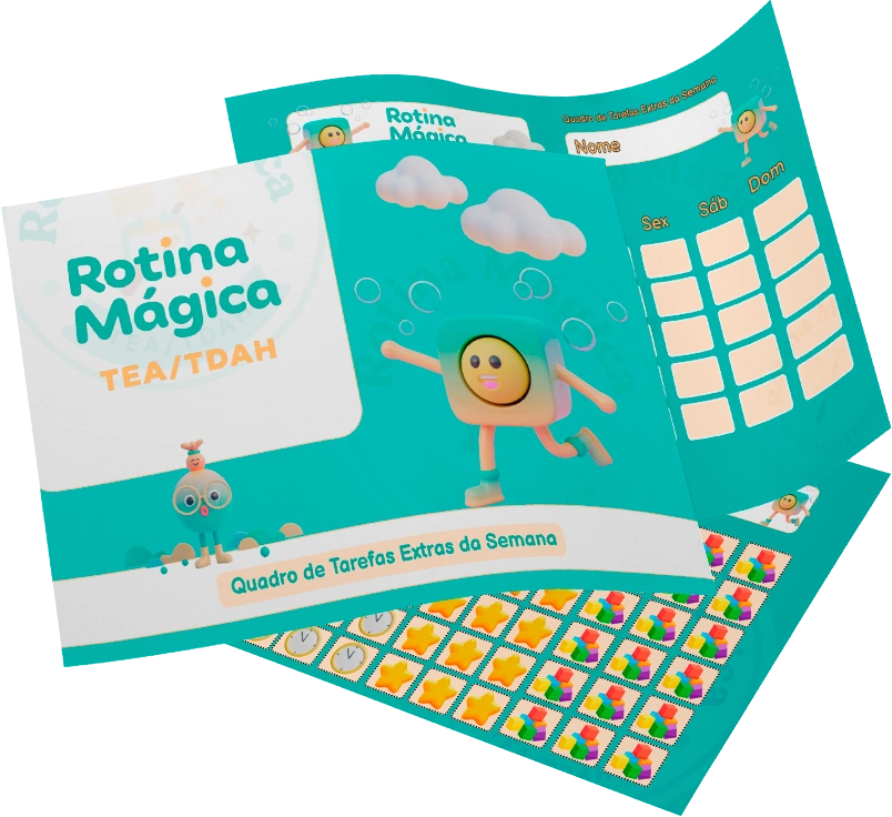 Mas quando ela VÊ num quadro colorido e organizado? Entende TUDO instantaneamente. Sem ansiedade. Sem crise.